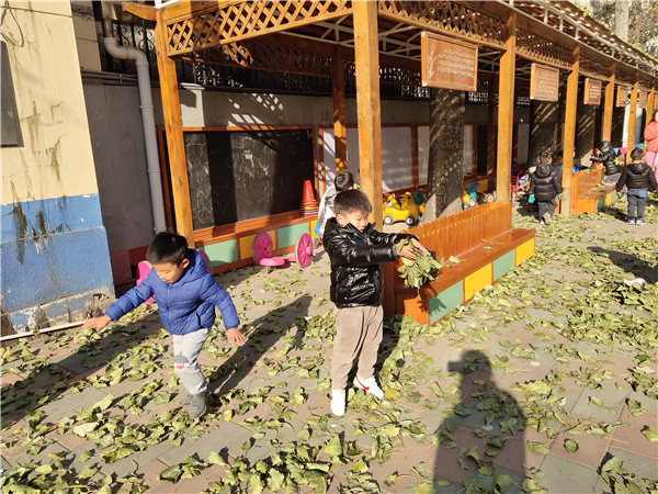 秋风扫落叶,随着天气逐渐转冷地上的落叶越来越多了,小朋友户外时经常看见很多的树叶被吹落在地上,小朋友们时常捡起地上的树叶去做游戏,有的抛起来,有的用树叶走迷宫,还有的为老师小朋友制作了一束手捧花,还有的小朋友把树叶捡起来去喂小企鹅。